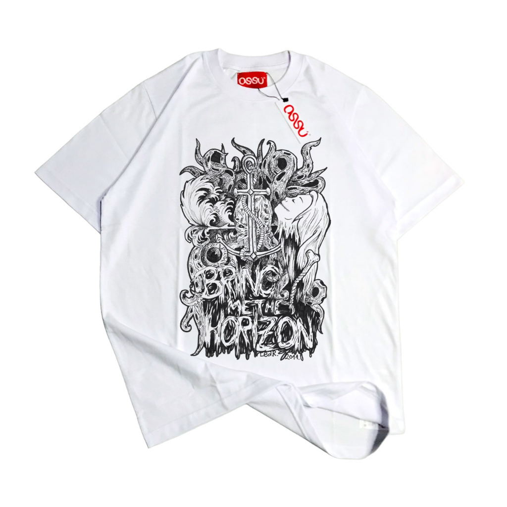 Ossu Tshirt Band Bring Me The Horizon | Kaos Band Bmth Black Wash Grey White Tee