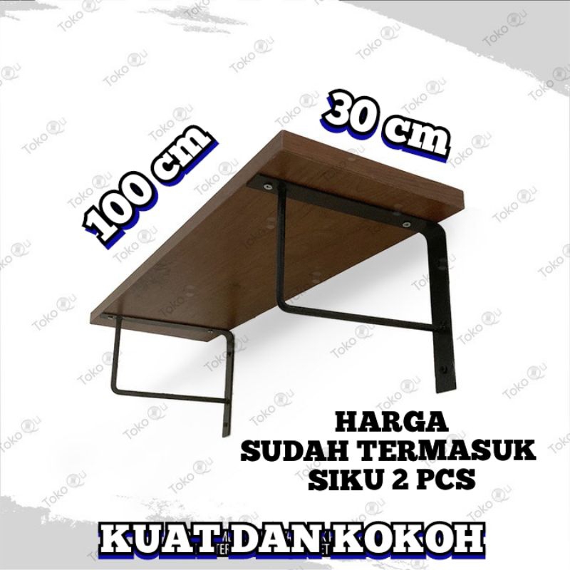Rak ambalan dinding minimalis siku besi size 30 cm x 100 cm x 2 cm