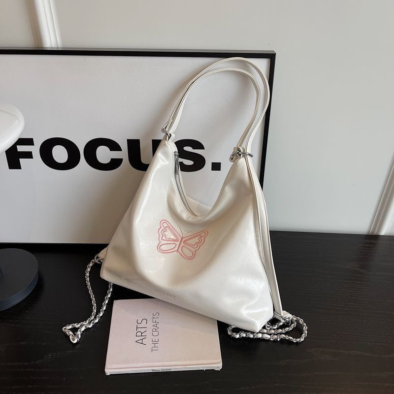 HOTANK Wanita Tas Selempang Keren Keren Fashion Tas Bahu Kupu-kupu Senior Sense Tote Kapasitas Besar Tas Bahu Kembar Multi Guna