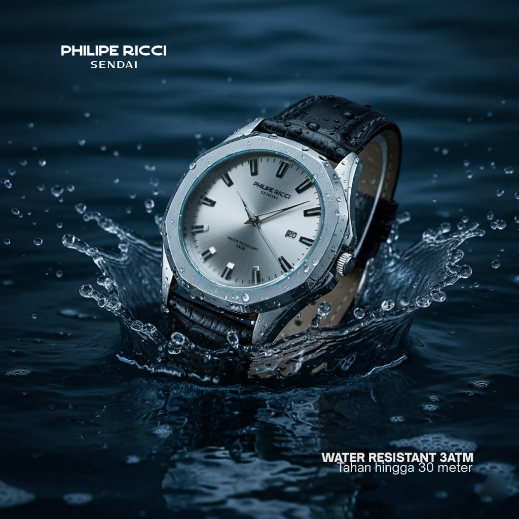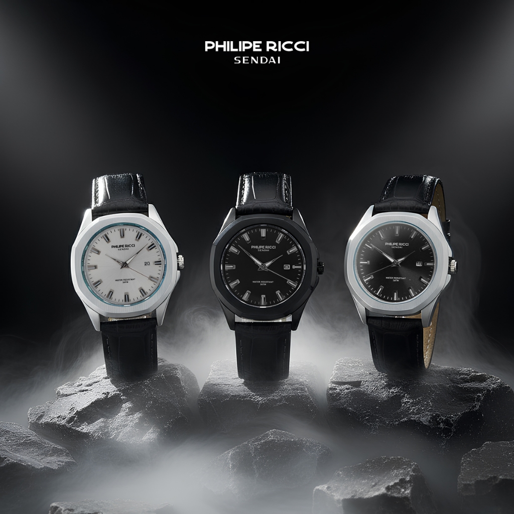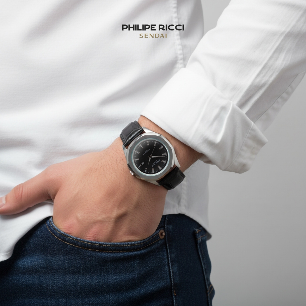 Philipe Ricci Sendai Jam Tangan Pria Kulit Hitam Terbaru 100 PERSEN Ori Water Resist 6481 Men Watches