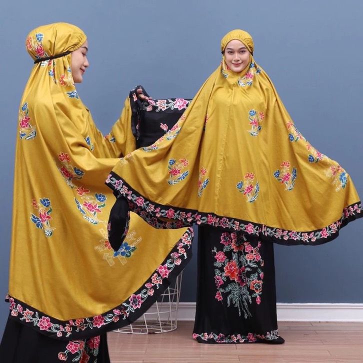 Mukena Batik Jumbo Bahan Rayon Premium Adem Motif Bunga Enchim Pekalongan Mukena Dewasa Terbaru 2026