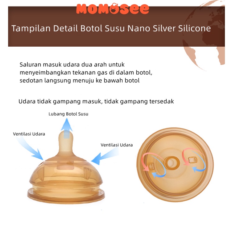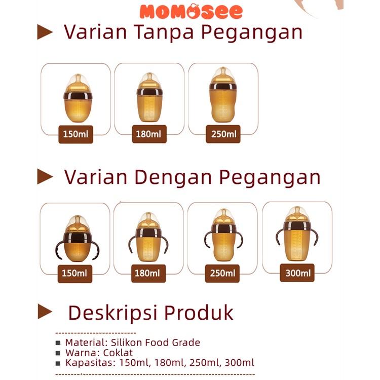 Momosee Botol Susu Bayi Piko Bello Anti Kolik Botol Susu Bayi Wide Neck Botol Susu Silikon BB06