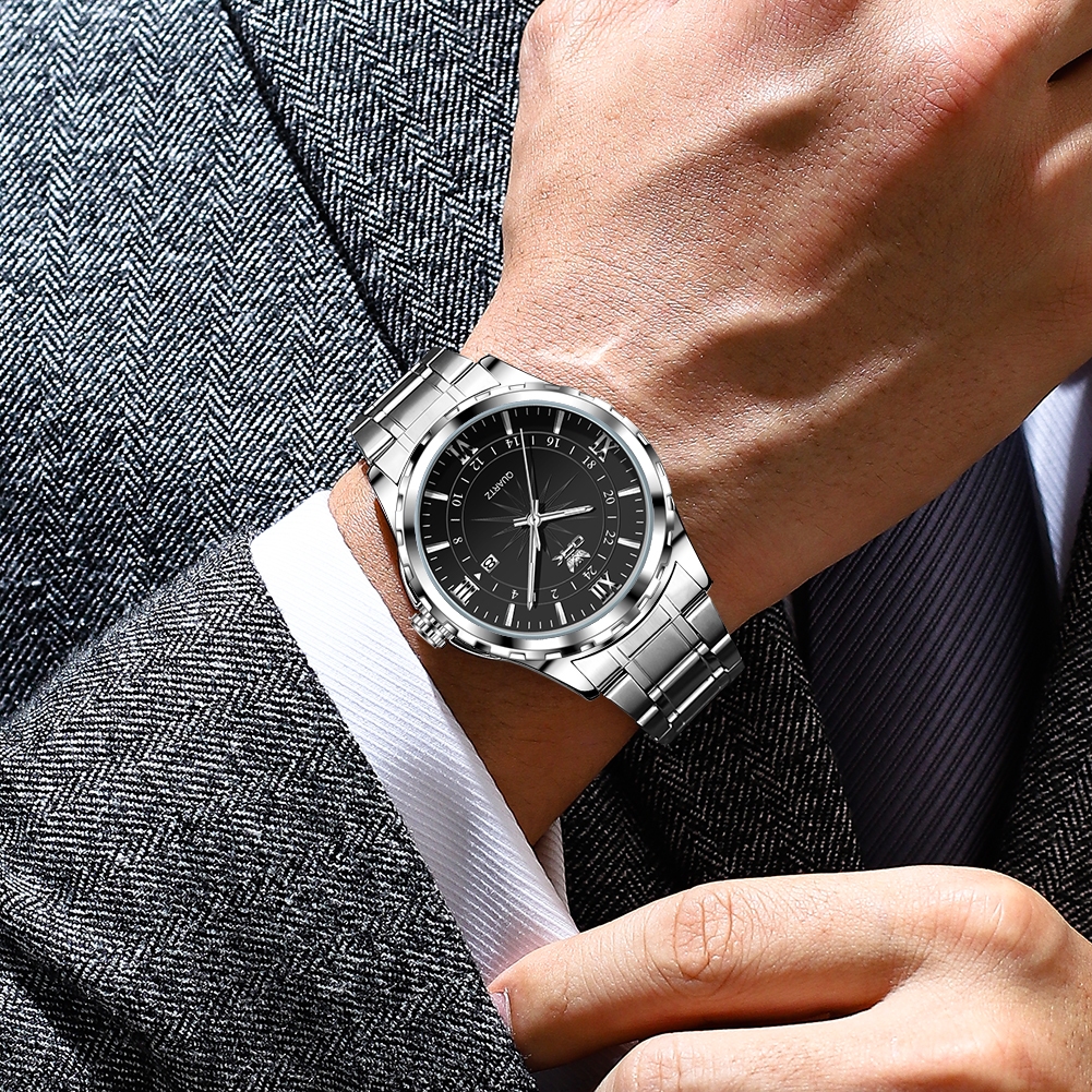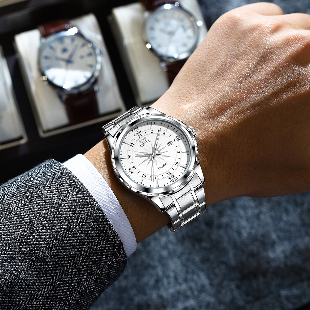 Opk Jam Tangan Cowok Original Branded Luminous Stainless Steel Leather Bisnis Men Watch Model 6003