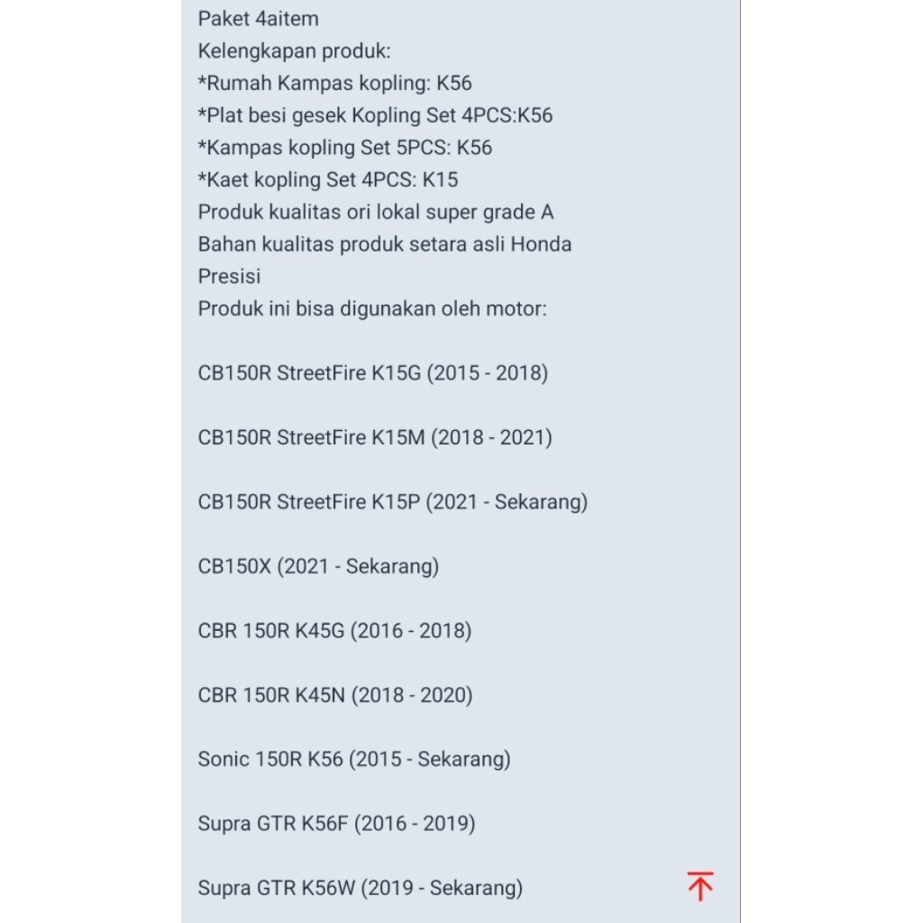 Rumah kopling K56+Plat gesek K56+Kampas kopling K56+Karet kopling K15 4aitem CB150R StreetFire K15P LED CBR150R New LED CB150X SONIC 150R GTR Ori lokal
