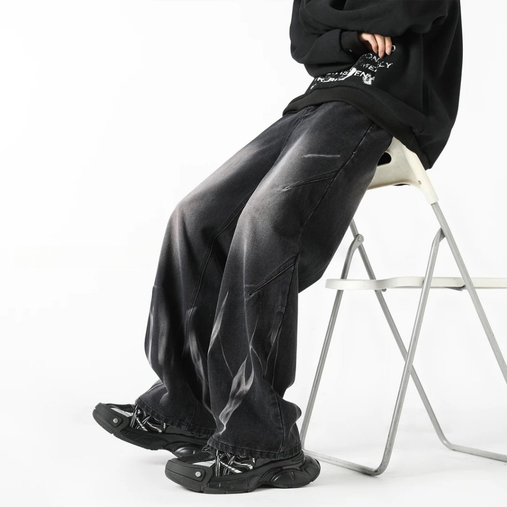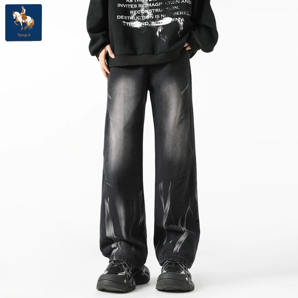 Tamp-X Oversize Baggy Celana Jeans Pria Jeans Petir Skena Hitam Denim Jumbo Loose Jeans Korean Style Kulot Straight Retr