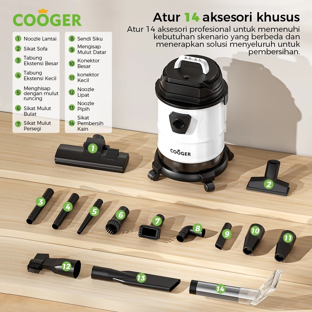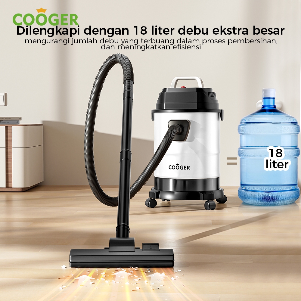 COOGER Vacuum Pro Wet and Dry Vacuum Basah & Kering 18Liter Daya Hisap Kuat 19000pa Vacum Penyedot Debu Lantai Kasur Sofa/Rumah