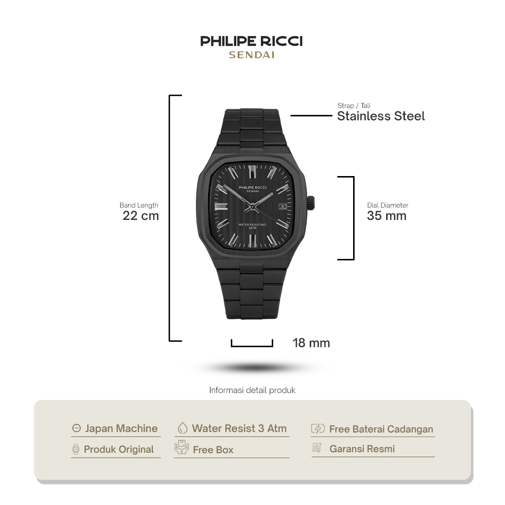 Philipe Ricci Sendai Jam Tangan Pria Rantai Stainless Steel Simple Terbaru Keren 6339 Men Watches