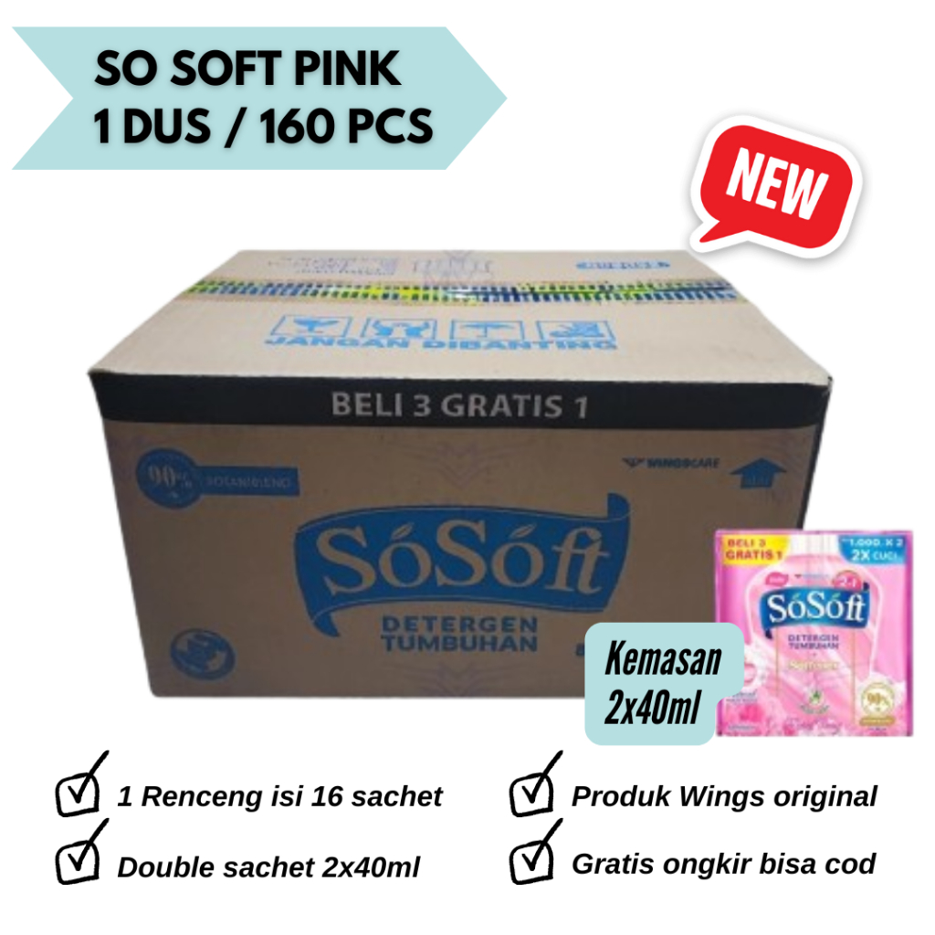 SoSoft 1 Dus Isi 10 Renceng So Soft Detergent Cair Sabun Cuci Baju SoSoft Cair