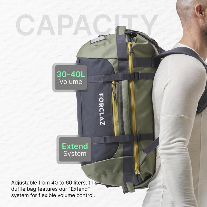 Decathlon Forclaz Travel Bag Trekking Duffel 500 Extend 40/60L - Hijau Khaki - 8383299