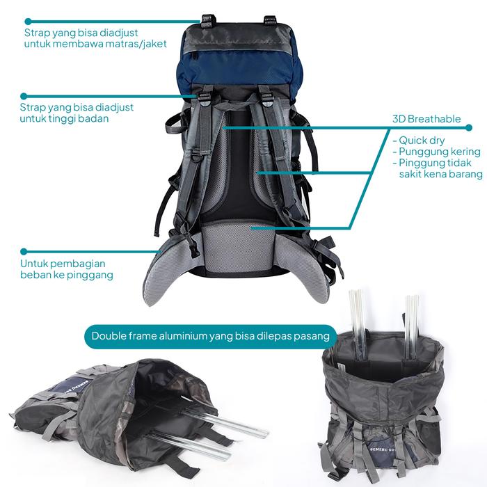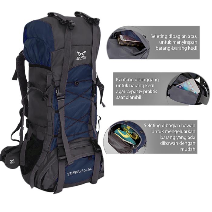 Tas Ransel Gunung Carrier 60L+5L Backsupport Water Resistant Outdoor Hiking Bag FK0008
