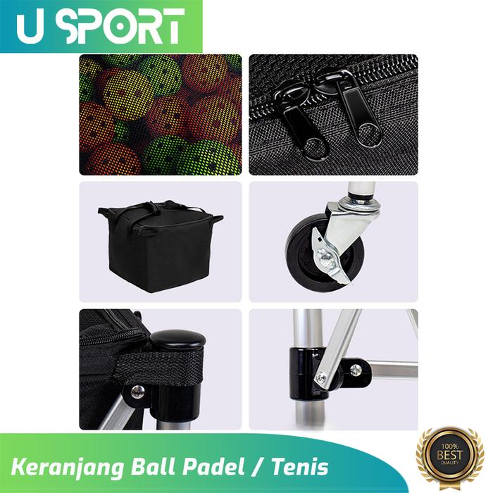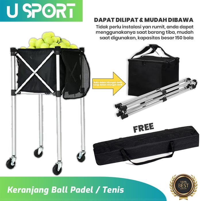 Keranjang Bola Latihan Padel Portabel dengan Roda / Portable Folding Padel Ball Black Includes Carry
