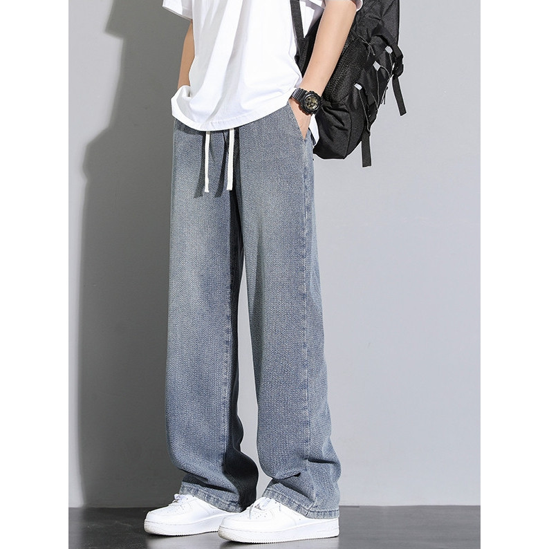 DISAI Celana Jeans unisex Celana Baggy Jeans Gombrong Cowok Versi Dari Yang Ramping Denim Kulot