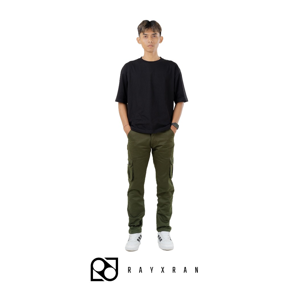 Rayxran Celana Cargo Panjang Pria Basic Outdoor Green Army Slimfit