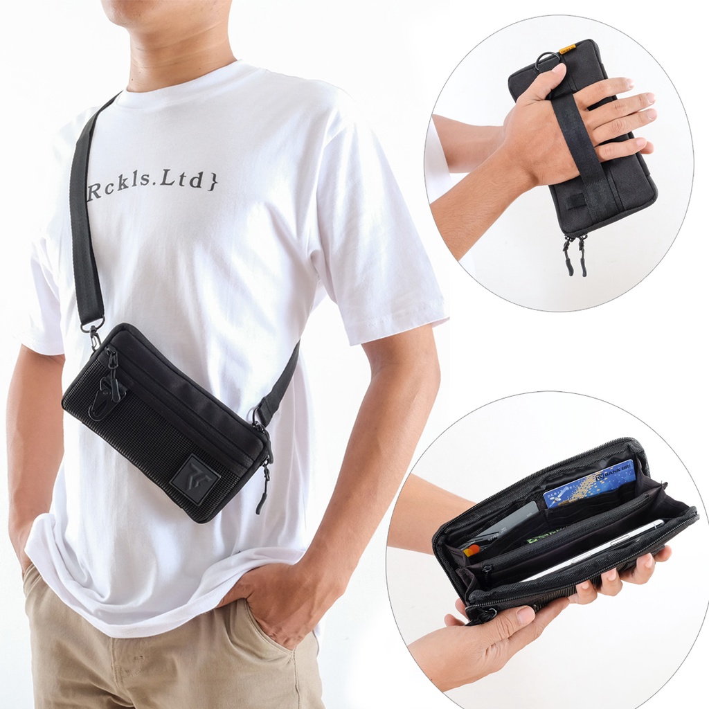 Rckls. Sling Bag Target Hitam | Tas Selempang Unisex | Orion Black | High Quality Dompet Hp