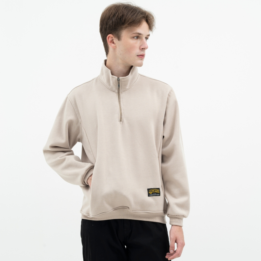 Rocafela Halfzip Pullover Sweater Crewneck Pria Elegan Saku Basic Premium Half Zipper Polos