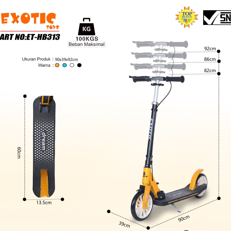 Scooter Anak EXOTIC SCOOTER BESI ET-HB313 (REM TANGAN SUSP) roda besar 200MM ET HB313 BEBAN 100KG