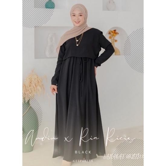 Gamis Hitam Simpel set 2 in one inner outer gamis remaja black kondangan dewasa polos frendly.
