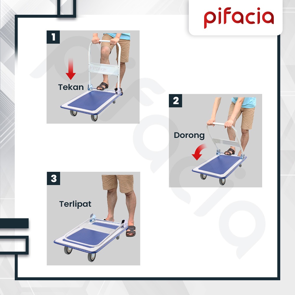 PIFACIA Troli Dorong Lipat Handtruck Gerobak Trolley Serbaguna Bahan Besi Kokoh 150 Kg