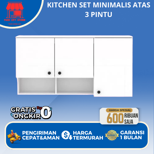 KITCHEN SET MINIMALIS ATAS 3 PINTU Rak Dapur Lemari Dapur Rak Penyimpanan Microwave Oven Serbaguna Susun Piring Wastafel