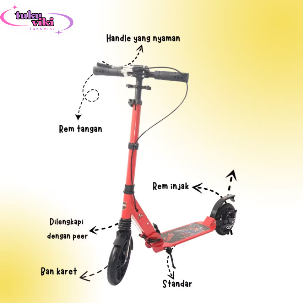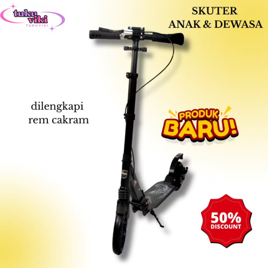 Skuter Lipat Roda 2 Dewasa Scooter Rem Tangan dan Cakram Sekuter Roda Dua Otoped Outdoor Sport