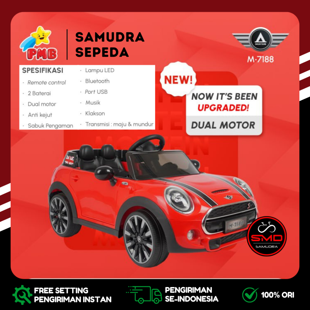 Mobil Aki Anak Cas Remote PMB 7188 2 Dinamo 12V Mini Cooper Murah BDG