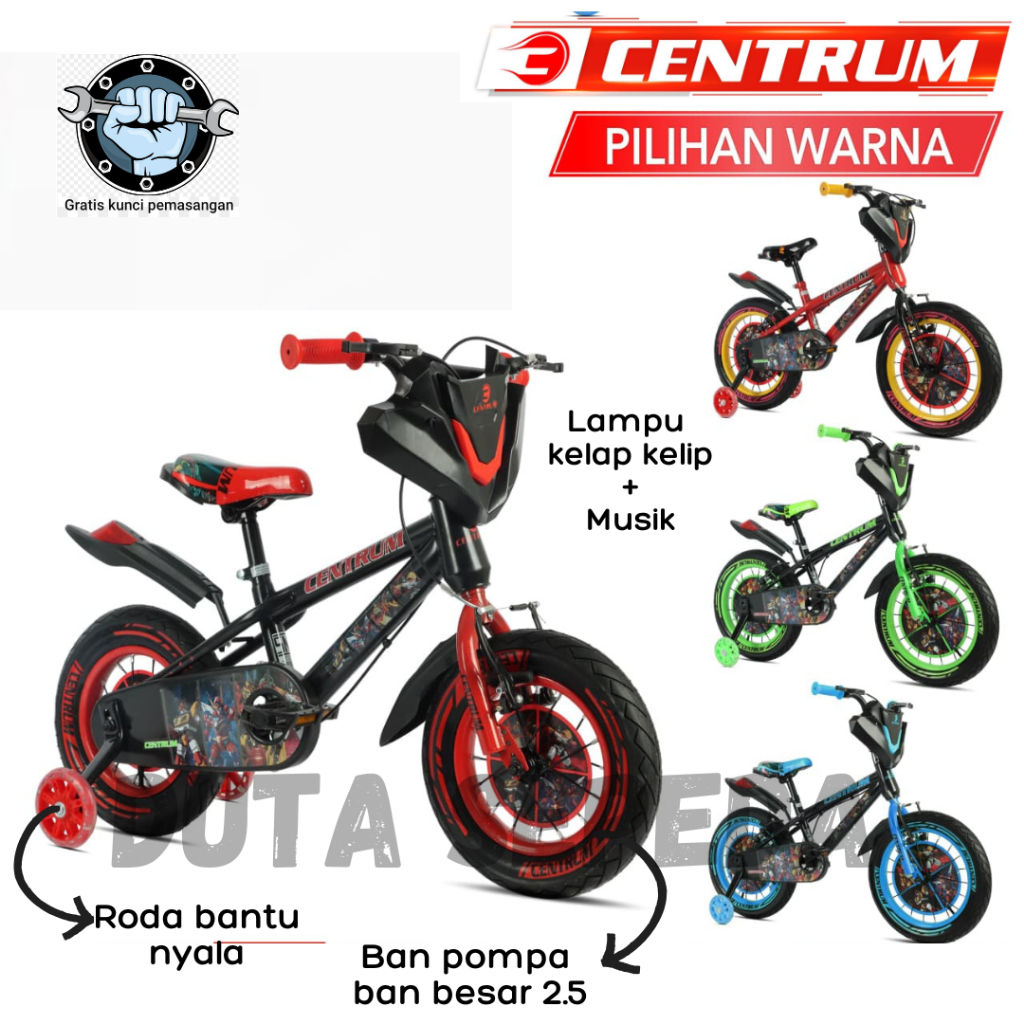 sepeda anak laki / Cowo ban pompa ukuran 12 16 18 inch lampu - musik