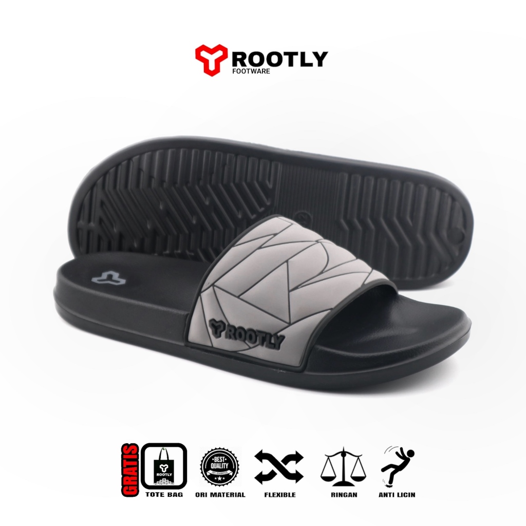 Rootly - Sandal Pria Slide Full Karet Ringan Rush Abu