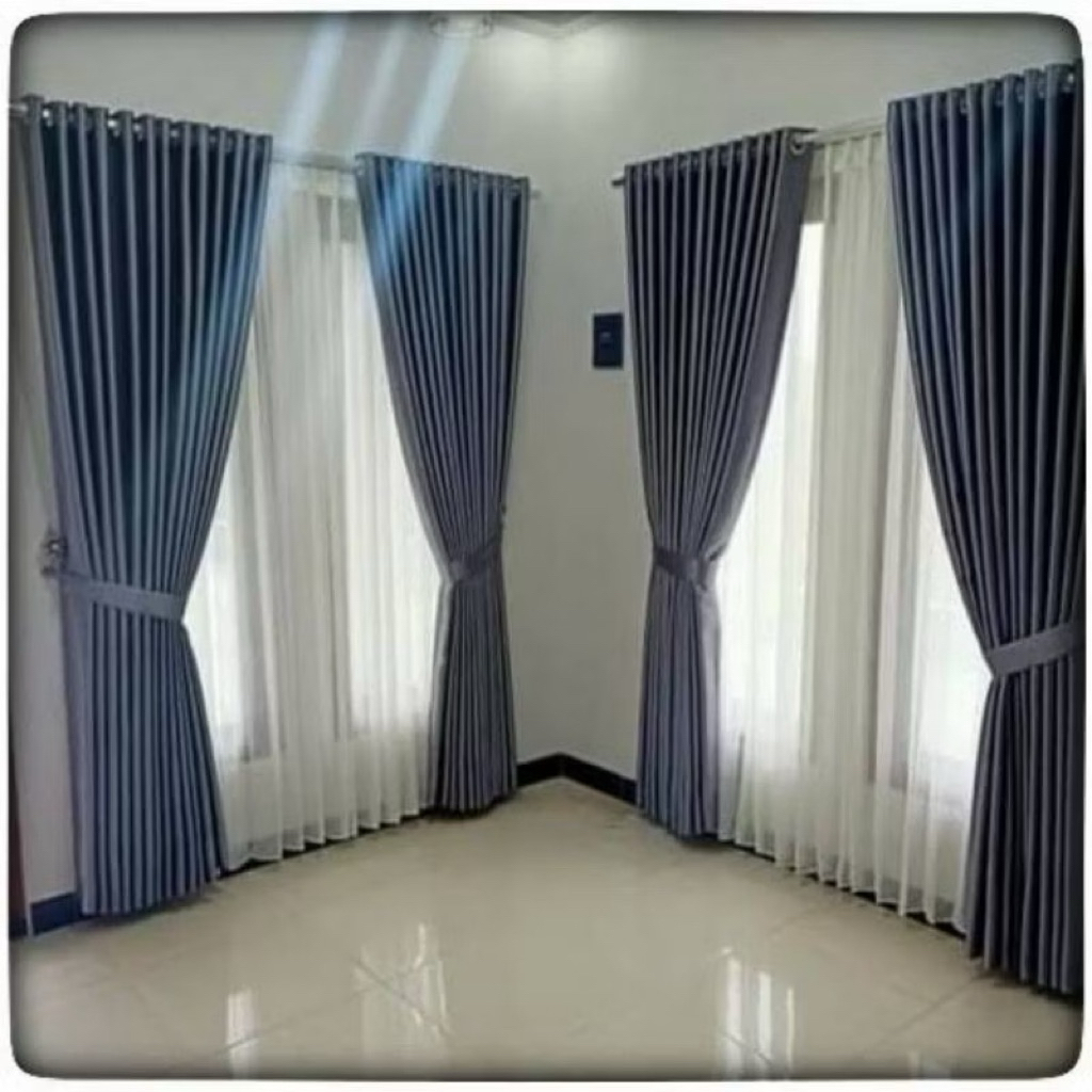 Gorden blackout polos 9 gelombang dan 12 gelombang serat abstrak depan doff belakang glossy