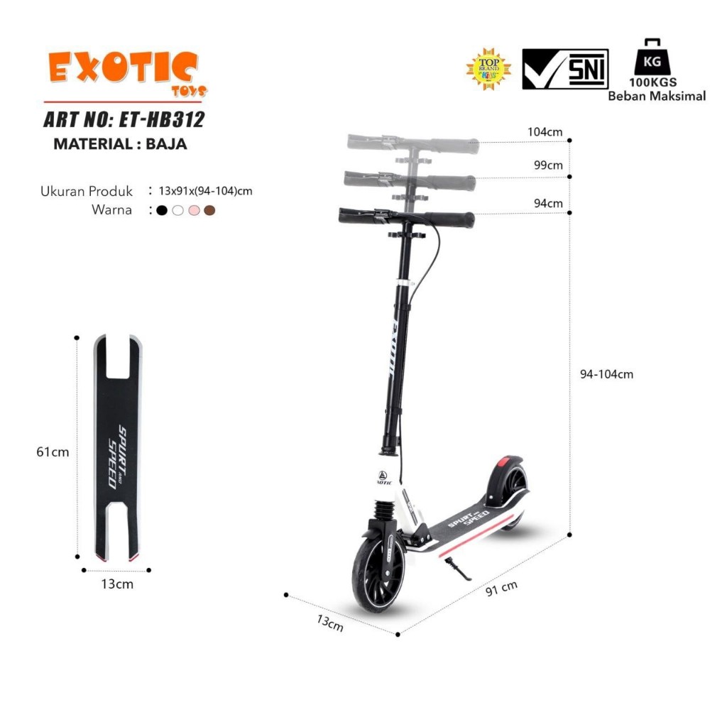 Skuter Besi Roda Dua Exotic HB312 Remaja-Dewasa Suspensi Depan Rem Tangan Up 100Kg