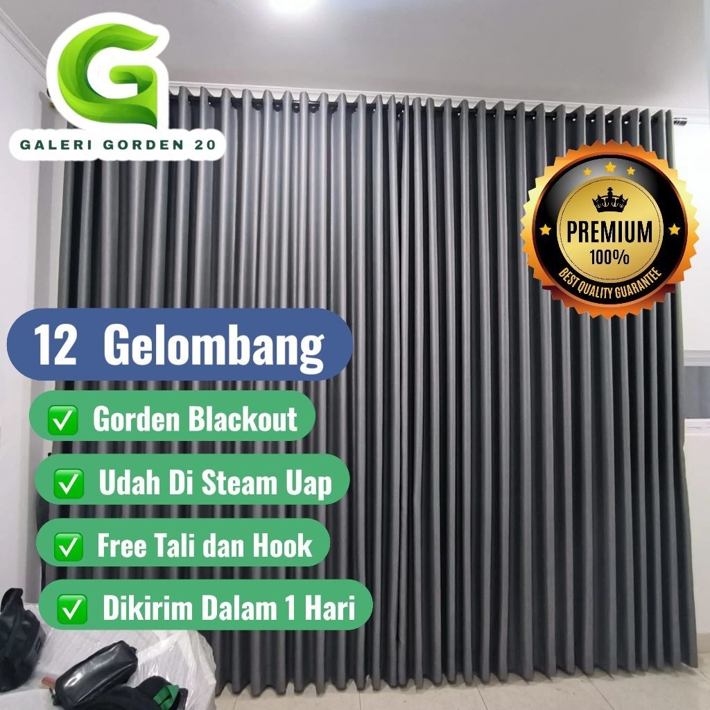 Gorden Jendela Minimalis 12 Gelombang Kain Blackout Premium Grade A Anti Cahaya
