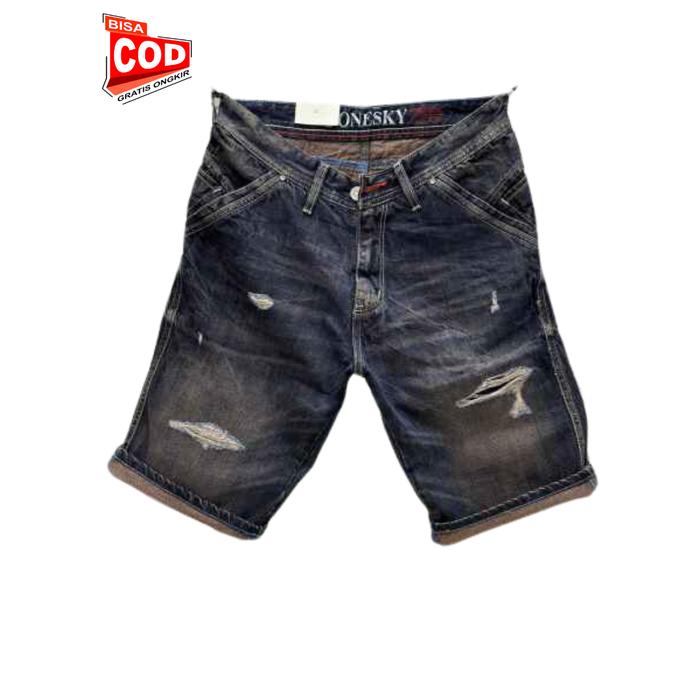 ONESKY - CELANA JEANS PENDEK PRIA 27-35 / CELANA DENIM PENDEK PRIA SOBEK / CELANA PENDEK SANTAI - BIO BLITZ, 27