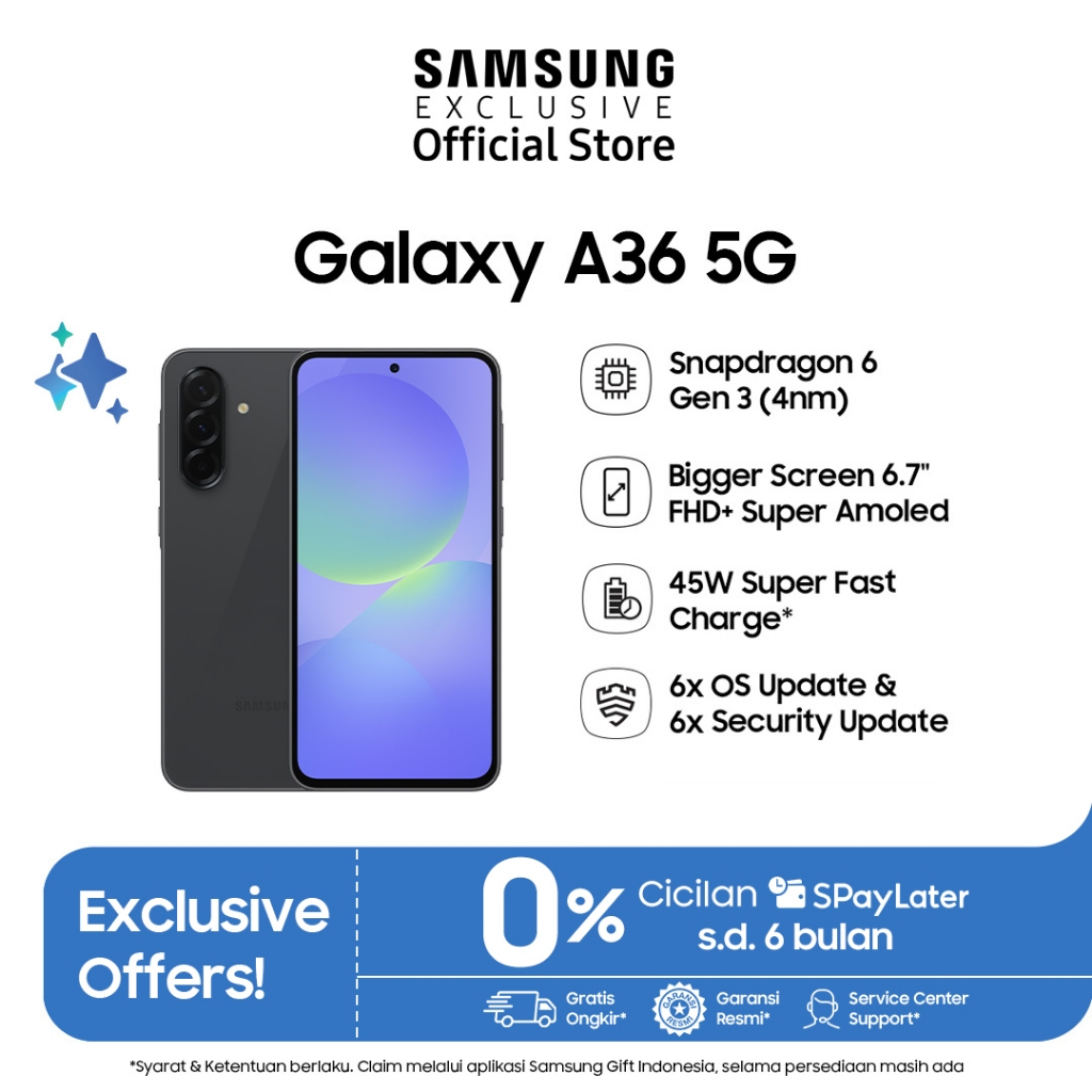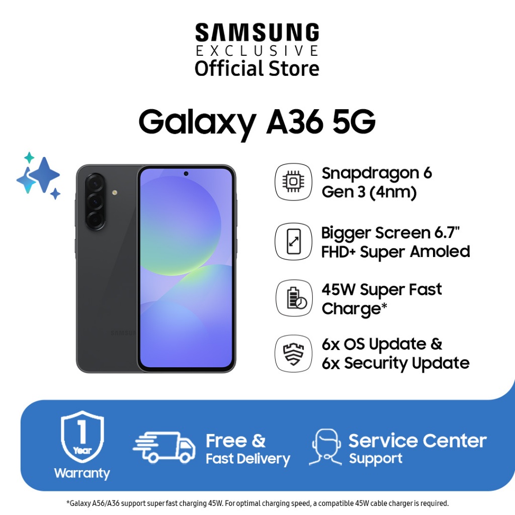 Samsung Galaxy A36 5G 12/256 GB - Awesome Black | Galaxy AI | Snapdragon 6 | 45W Super Fast Charge