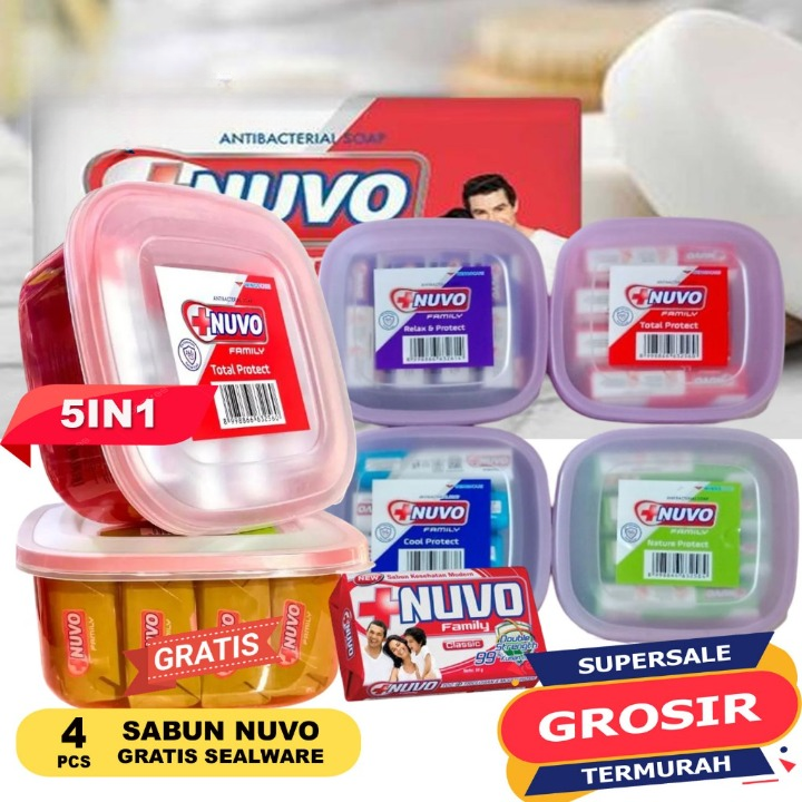 Sabun Batang Nuvo Bar isi 4pcs Gratis Toples Sealware Sabun Mandi Nuvo