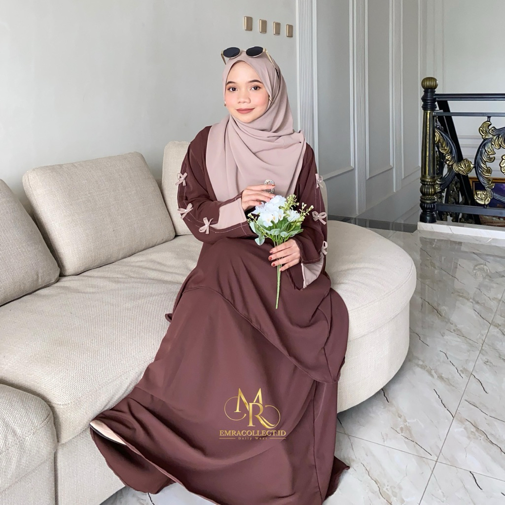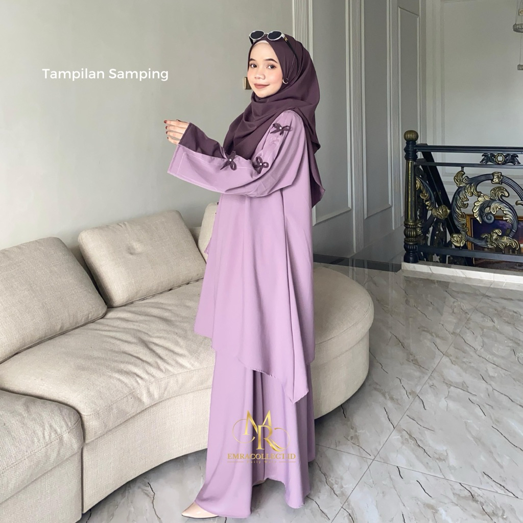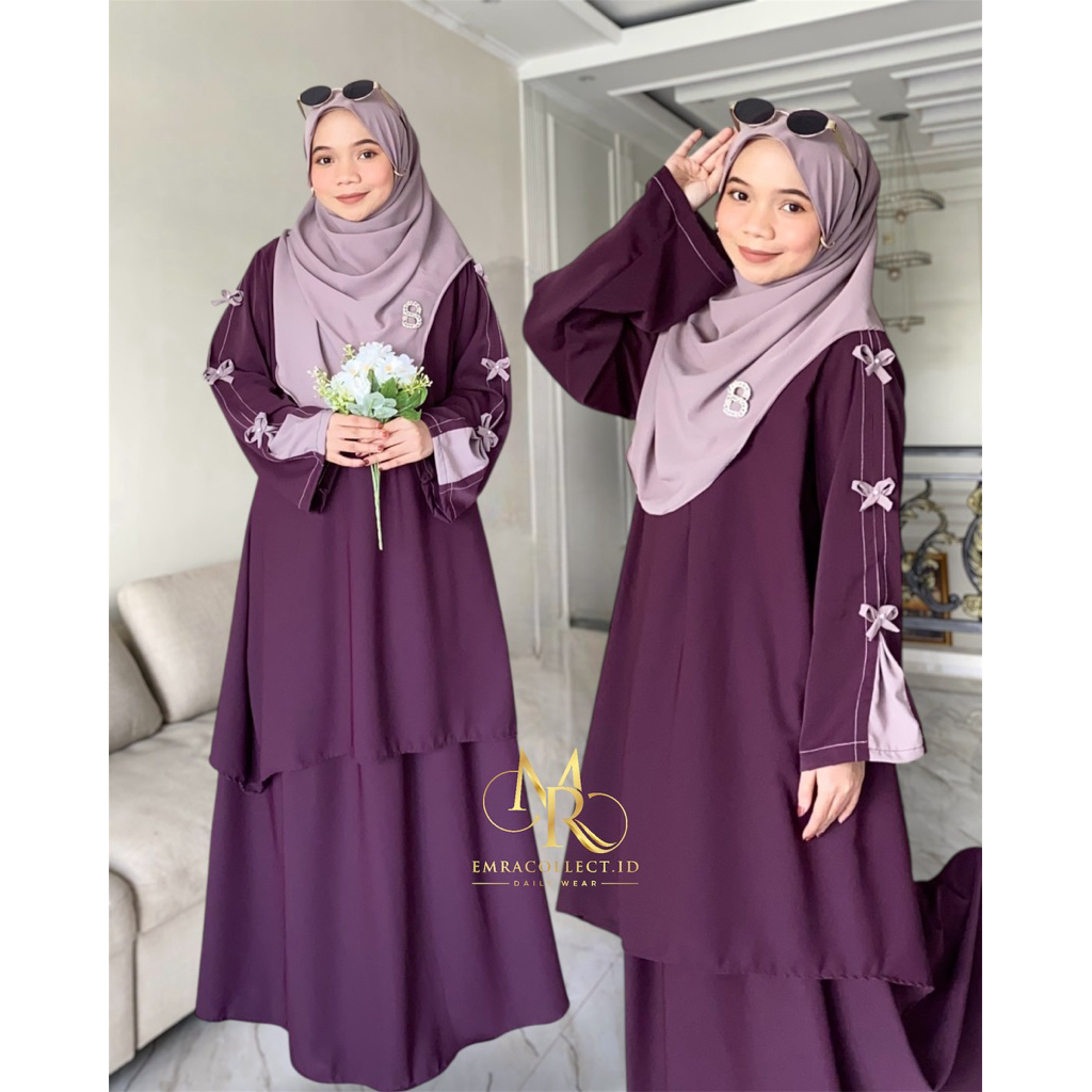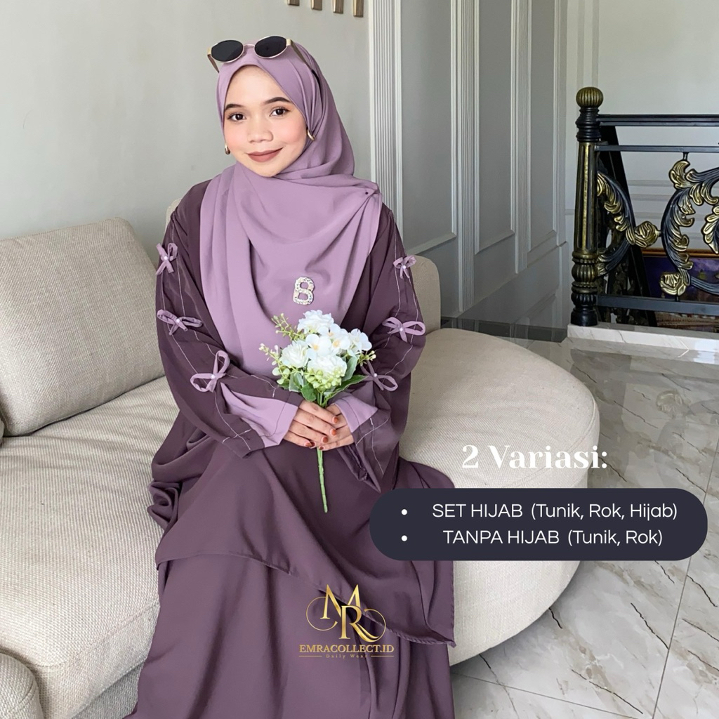 Aluna Setelan 2in1 Tunik Rok Anti UV Oneset Muslimah Malay Free Pashmina Oval Set Rok Pita by Emra