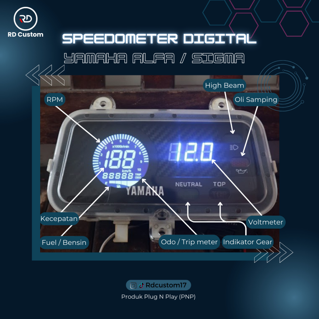 Speedometer Digital Yamaha Alfa Sigma Dengan Indikator Lengkap