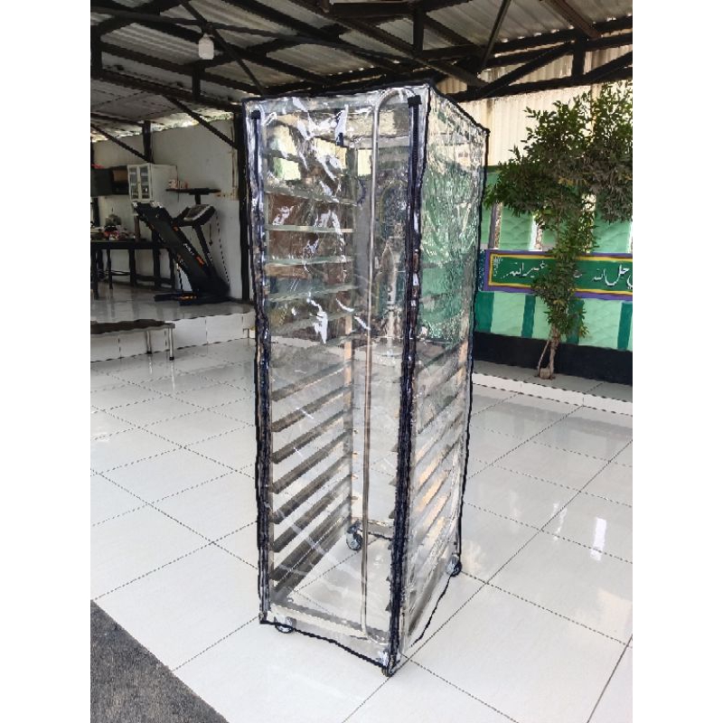troly rak loyang roti 15 susun+cover profing+loyang 1set paket murah