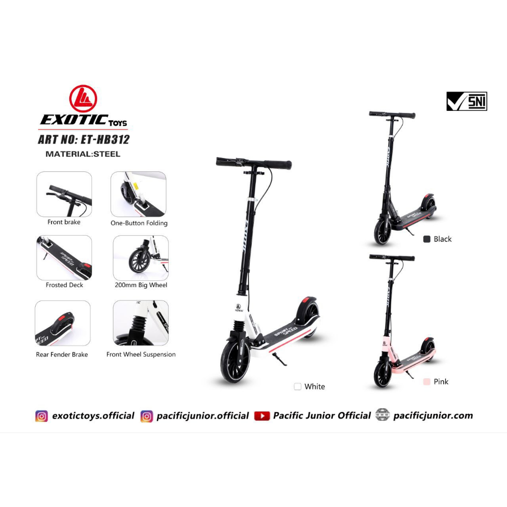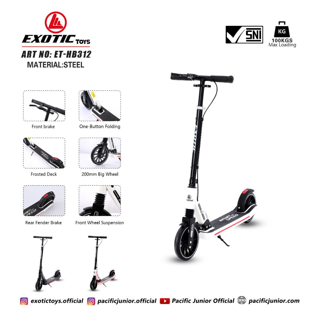 SCOOTER ANAK SAMPAI DEWASA||OTOPED BAHAN FULL BESI TAHAN BEBAN SAMPAI 100 KG||SKUTER DEWASA REM TANGAN EXOTIC ET-HB 312