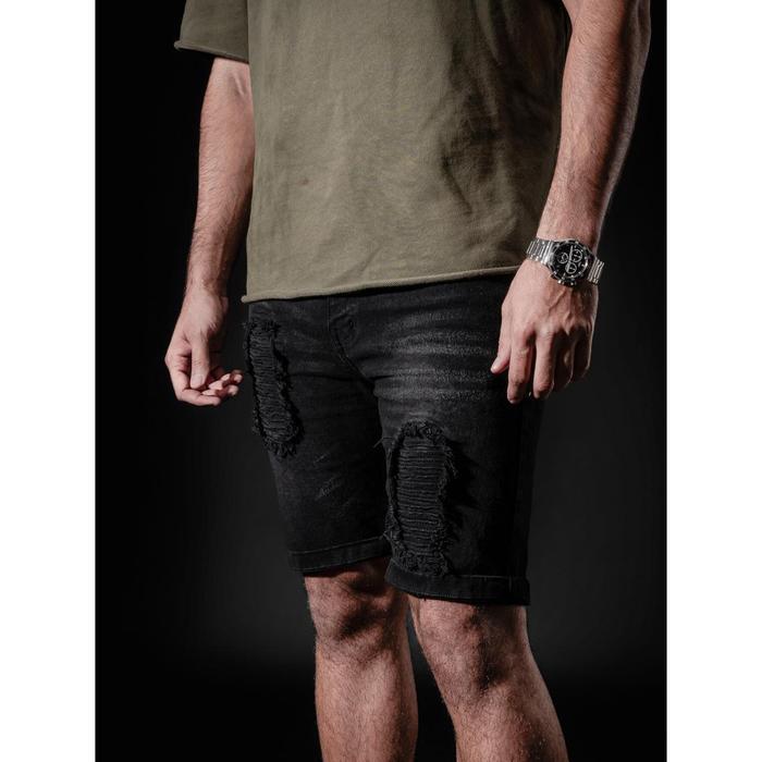 LOD.DENIM - CELANA PENDEK JEANS BIKER DENIM SKINNY FIT SLIM FIT STRETCH SUPER PREMIUM - SHORTPANTS BLACK MEISTER - 31
