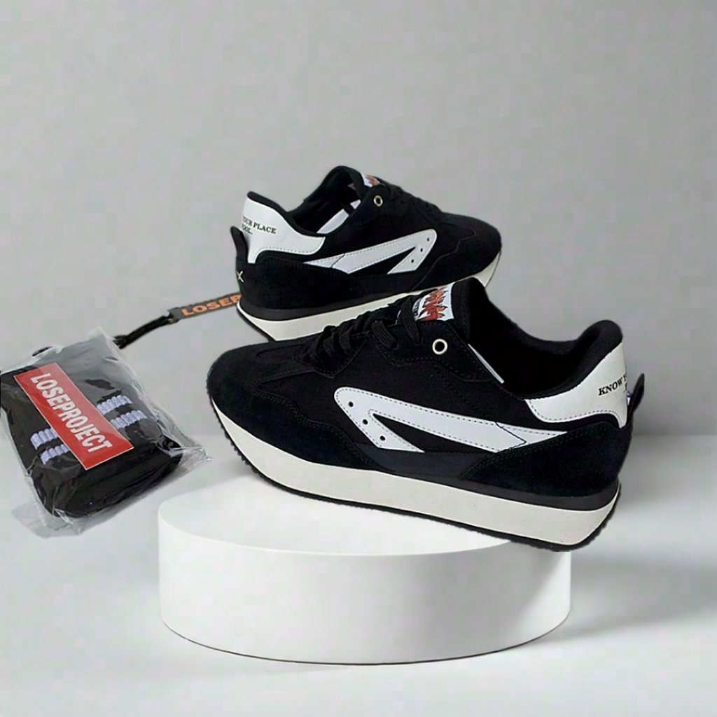 Sepatu Sneakers Running Joging Pria Wanita Unisex | Loseproject | Ryomen | Black White