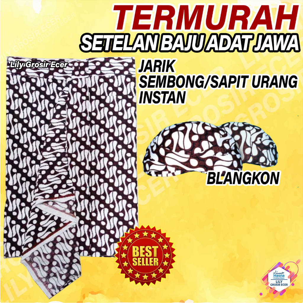 Setelan Baju Surjan Lurik Dewasa + Jarik Tapih Sembongan + Blangkon Busana Adat Jawa Elegan & Berkelas