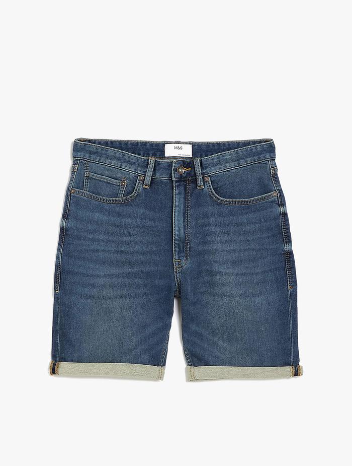 M&S - CELANA PENDEK PRIA - 5 POCKET DENIM SHORTS - MEDIUM BLUE - MEDIUM BLUE, UK 36