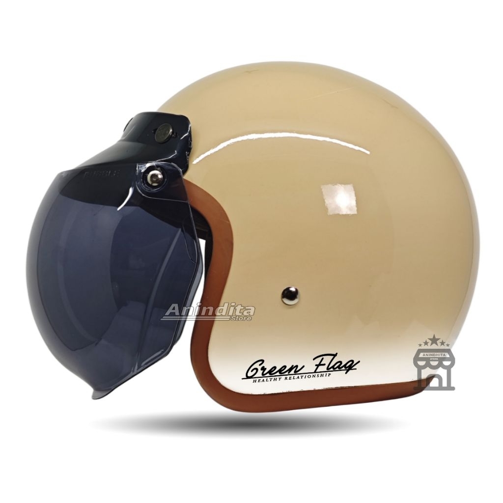 Helmi Bogo Classic Gradasi Dewasa Retro Green Flag List Coklat