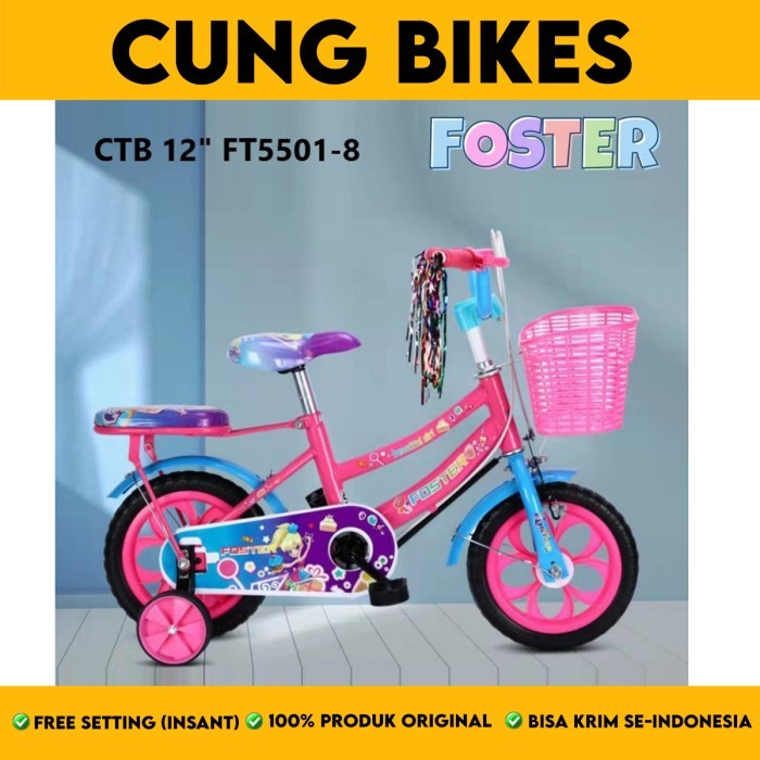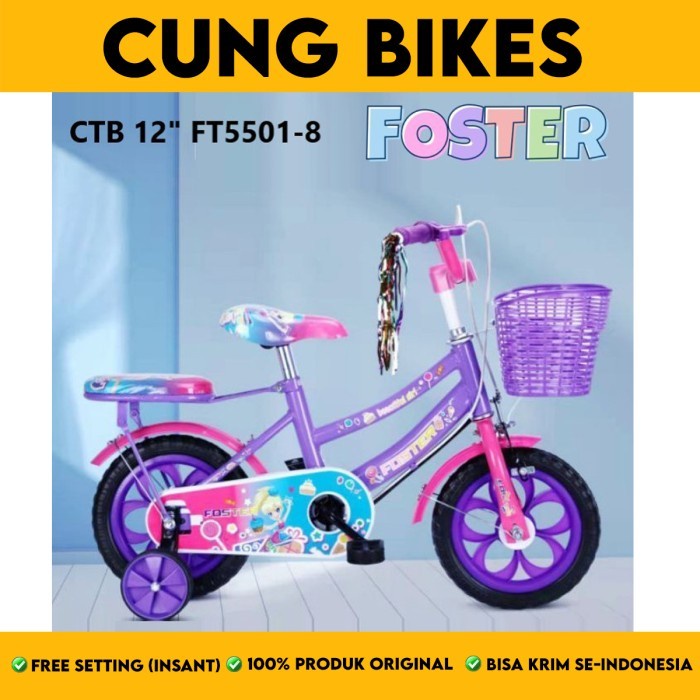 Sepeda Anak Perempuan MINI ukuran 12 Inch FOSTER 5501-8-7 Ban EVA