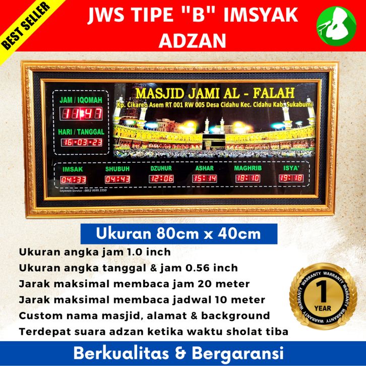 JAM MASJID DIGITAL SHOLAT B IMSYAK SUARA ADZAN UKURAN 80 CM X 40 CM TERLARIS