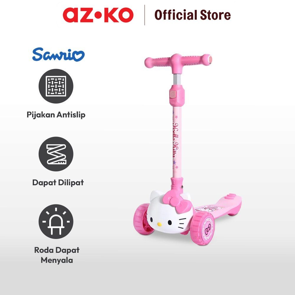 AZKO Sanrio Hello Kitty Skuter Anak 3 Roda 3D - Pink Mainan Kendaraan Anak Mainan Sekuter Mainan Tunggangan Kids Scooter
