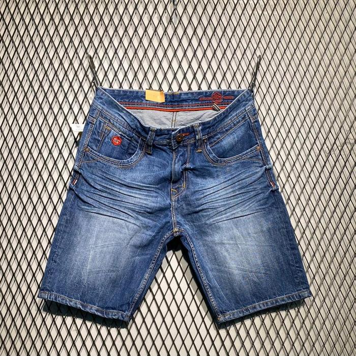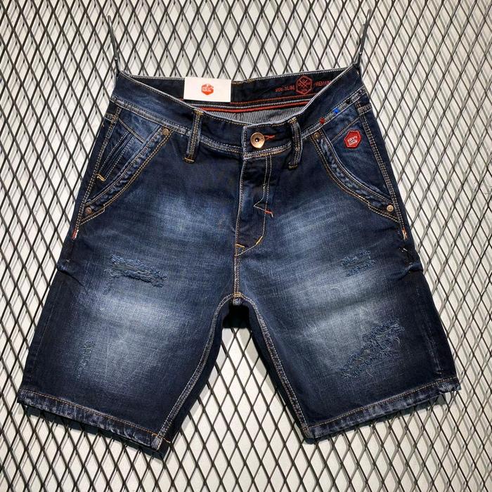 DIVILNINE CELANA PENDEK JEANS KEKINIAN CELANA PENDEK SELUTUT NON STRET/TIDAK KARET JEANS PRIA DISTRO DEWASA - BIRU GELAP POLOS, 28