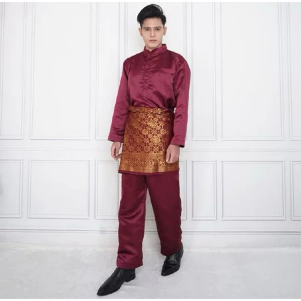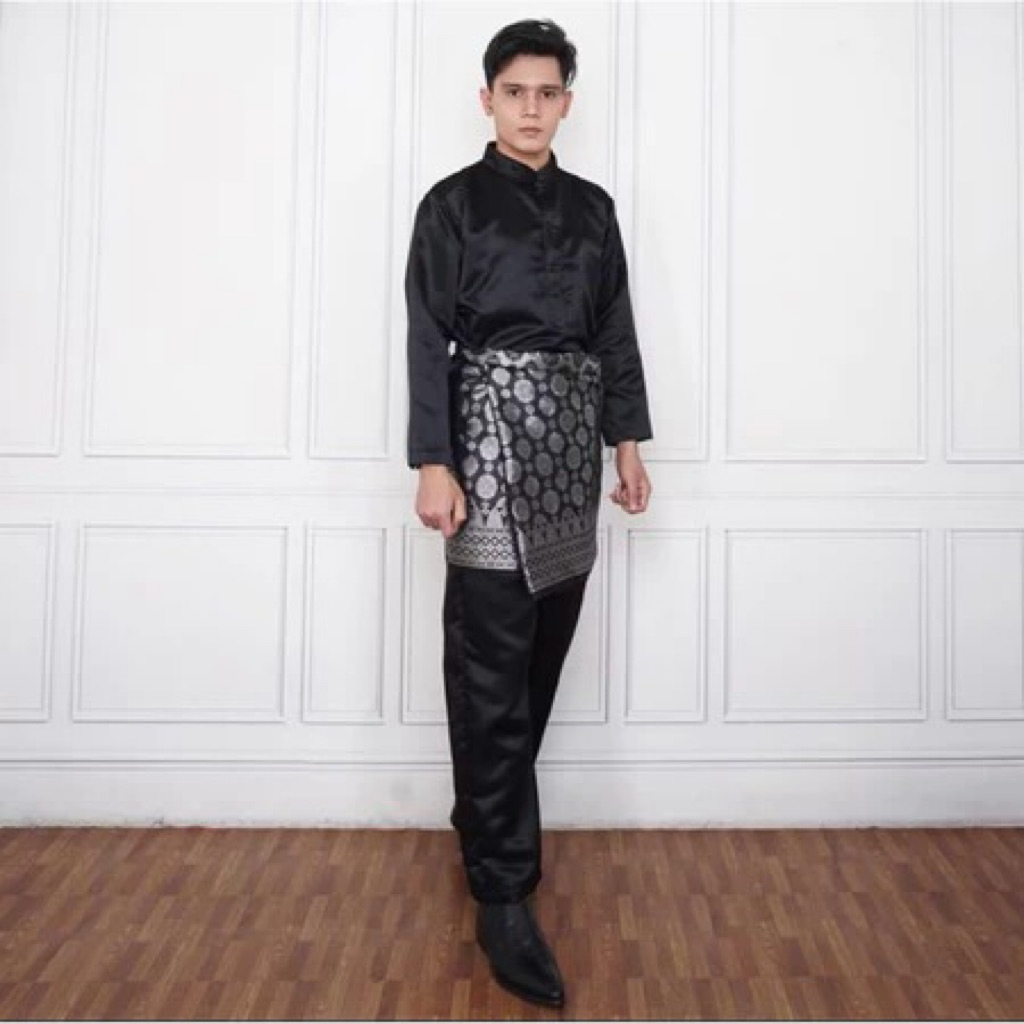 Setelan Melayu Pria+Kain Songket - Set Kondangan Cowok - Setelan Baju Pria Polos