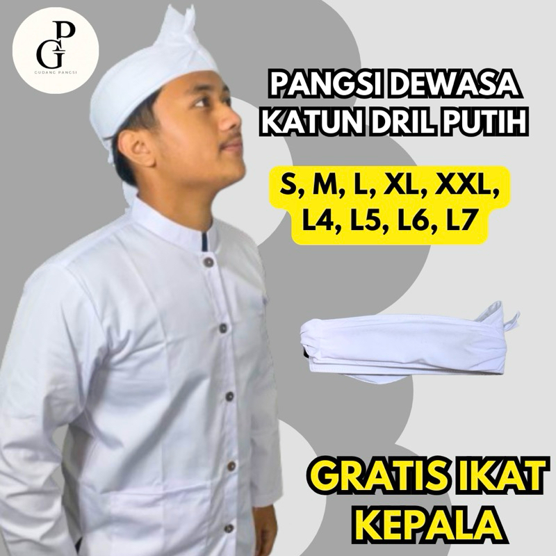 Setelan Pangsi Dewasa Katun Dril Putih (Gratis Ikat Kepala)