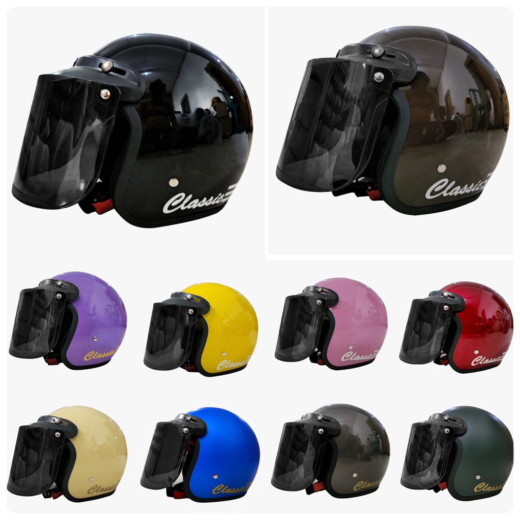 HELM BOGO GARIS DEWASA RETRO CAT MOTIF GARIS CLASIC POLOS GLOSSY DOFF VIRAL