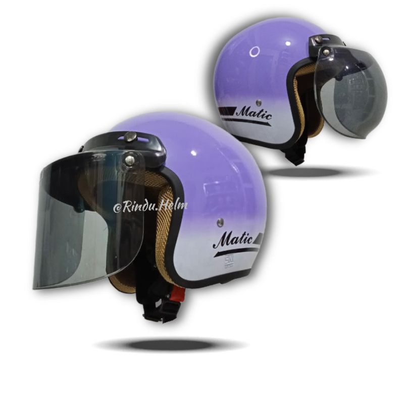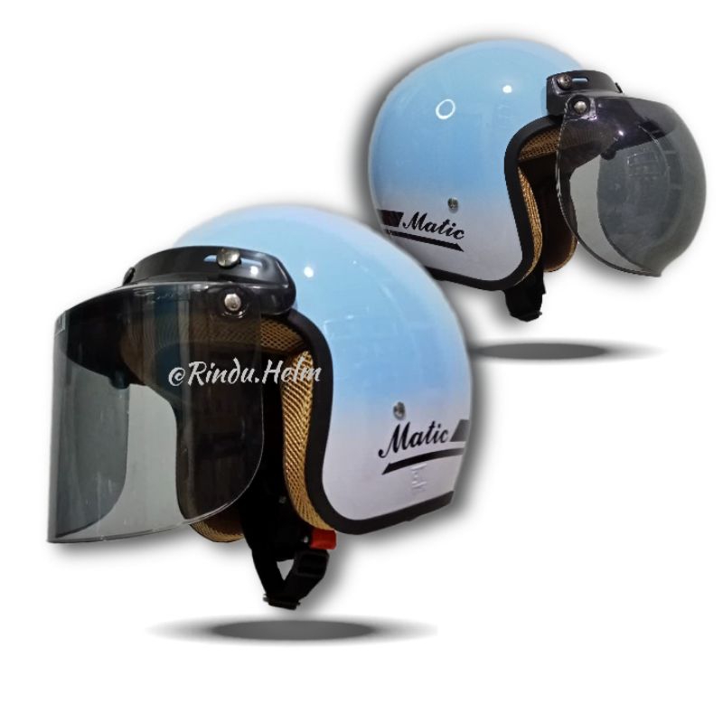 Kaca datar hitam, Kaca cembung hitam, Kaca datar putih, Helm saja tanpa kaca, Kaca cembung putih